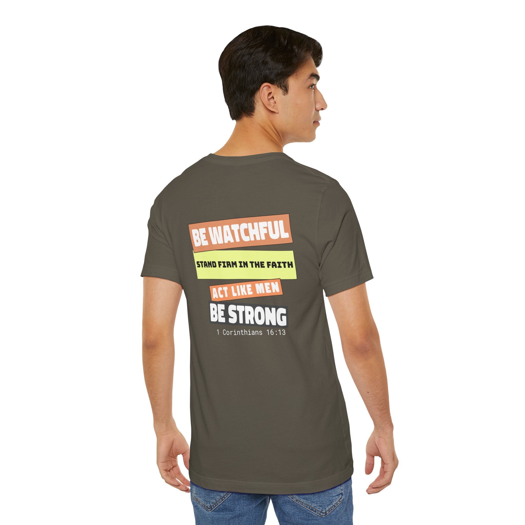 Men's Tshirt - 1 Corinthians 16:13 Bible Verse Design. Man of God, Stand firm in the Faith Select your color Army Athletic Heather Black Dark Grey Forest Heather Deep Teal Heather Green Heather Mint Navy True Royal Storm Heather Military Green Team Navy Select your size XS S M L XL 2XL 3XL 4XL 5XL Decrease quantity for Men's Tshirt - 1 Corinthians 16:13 Bible Verse Design. Man of God, Stand firm in the Faith Quantity Increase quantity Show product Select color Removing from cart... Adding... Out of stock Unavailable Add to cart Removing from cart... Adding... Already in cart Select another option From $24.99 Unit price / per